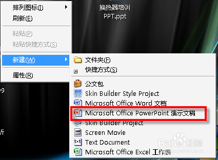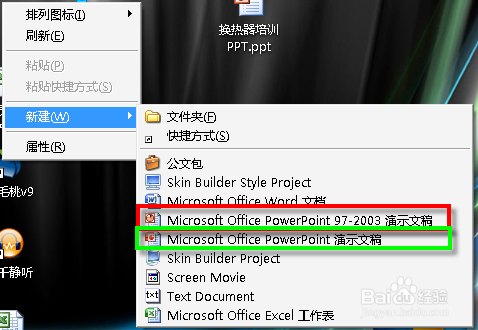 自从PowerPoint2007(以下简称PPT2007)以后创建的文档扩展名就改为pptx了,但PPT2003以前的版本无法打开,为了兼容性考虑我们还会经常创建ppt文档,但系统默认的右键快捷菜单中的新建只有新建2007以后的PPT文档,怎么办呢?