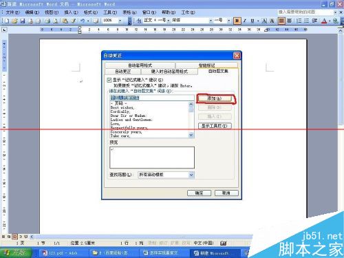 5、“添加”完成后,我们可以在词条列表中找到此段文字,下边的预览也会有显示,点击确定
