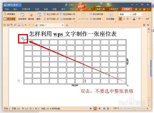 11、这时,我们发现表格外面的那个大边框没有去掉,我们将鼠标放到表格上出现的全选符号,而不要单击选中整张表格。双击后会弹出”表格属性“控制面板。