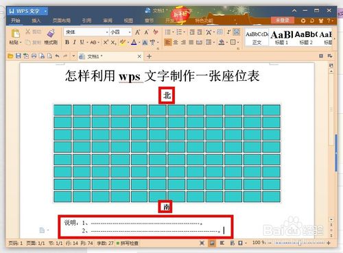 14、接着我们再制作好的表格的上下端或左右端,标注对应的方位,便于对号入座,以免造成方位的错误,在表格的下方,可以添加一些说明,如下图所示。