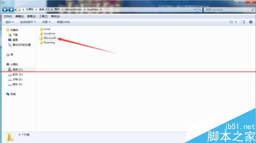 1、打开我的电脑找到【C:\Users\Administrator\AppData】路径下的Microsoft文件夹。(我们Microsoft存放路径)
