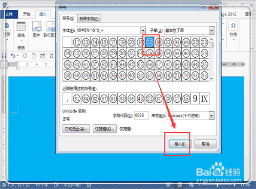5、这时候插入自己喜欢的带圈数字。点击选中,然后点击“插入”。