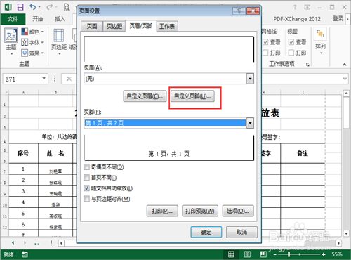 2、点击“页眉/页脚”进入设置。选择自己喜欢的页脚格式,点击“确定”。