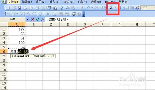 点击工具栏求和按钮