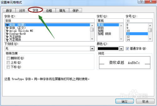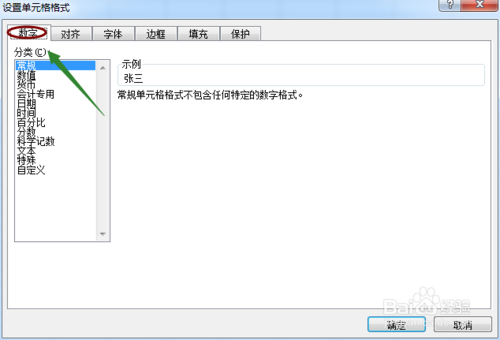 然后会弹出"单元格格式"对话框,目前位于"字体"下,我们切换至"数字"