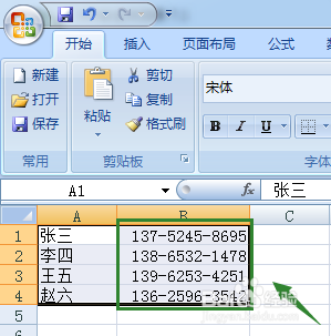 修改以后点击确定,然后返回到表格,此时我们就发现,这一列所有被选中的手机号码格式已经变成了分段显示