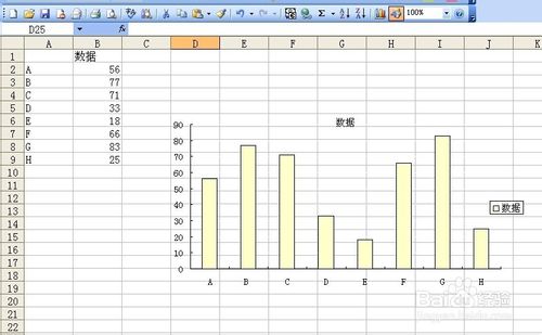 为方便演示 制作如下excel表格 并生成内嵌柱状图