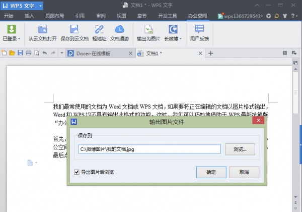我们最常使用的文档为Word文档或WPS文档,如果要将正在编辑的文档以图片格式输出,Word和WPS均不具有输出此格式的功能。这时,可以巧妙地借助于WPS最新抢鲜版“办公空间”模块中的一个长微博功能来实现。