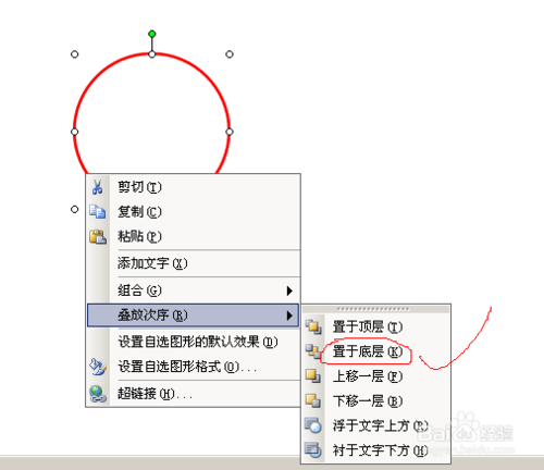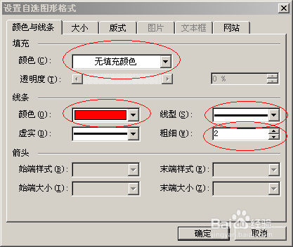 双击图形设置为“无填充色”,线条宽度为2磅,颜色为红色,“叠放次序”为“最底层”。