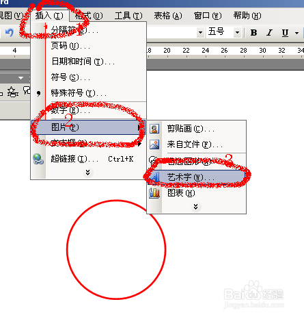 点击“插入”菜单,选“图片”中的“艺术字”一行三列,输入如:龙强电脑百度经验,利用旋转、弯曲等工具,调整适合大小。