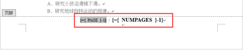 4、我们删掉页数数值,键入代码,如图所示,花括号是Ctrl+F9.
