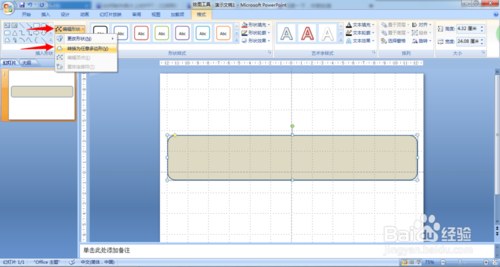 2、双击刚刚画好的“圆角矩形”,进入绘图工具模式。依次选择“编辑形状”→