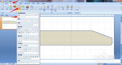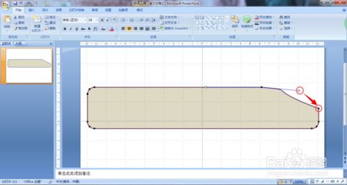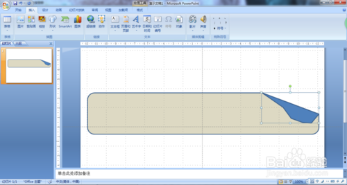 4、再次选择“插入”,这次选择“任意多边形”。在我们截取一个角的矩形右上角画一个如图所示的多边形。然后用第3步的方法,编辑多边形的顶点(将在大多边形内的点设置成“平滑顶点”),然后稍作修改,调到合适的位置。