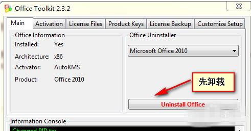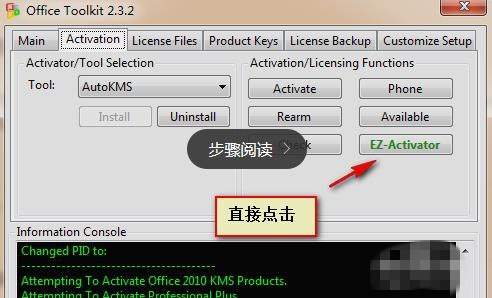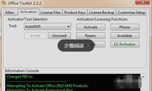 在激活office时,如果出现Cannot use EZ-Activator because your licensing details are corrupt错误。打开Office Toolkit工具