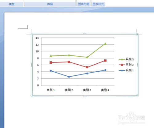 点击你需要的类型图。我选择的是折线图,你的word文档里面会出现一个数据图、。