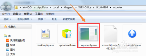 找到之后我们将其删除掉,然后新建一个名为"wpsnotify.exe”的空白文档,win7的朋友要注意,一定要将文件的后缀改为".exe",否则就是文本文档的格式,改完之后就是一个应用程序的格式了,如图,因为这是我们自行建立的,所以以后就不会再弹出新闻热点了,大家可以去试试哦