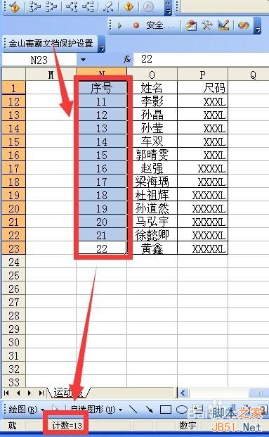 还是选中第一步的选区 此时的计数为13 计数只对显示的单元格范围计数