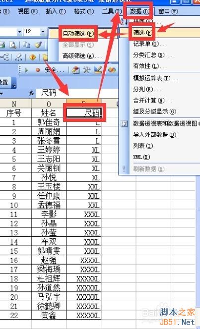 点击黑三角 点选最大的尺码 执行一次具体的筛选 然后最大尺码的被保留 其余的被筛掉了