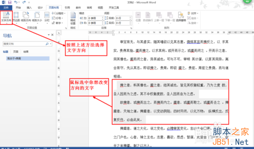 a) 鼠标选中你所需要的文字然后再按照上述方法修改文字方向