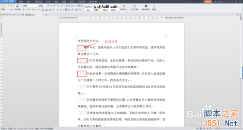 经常使用电脑办公,在进行文字编辑时,碰到段首空格(如图所示 ),最先反应可能是用退格键或是deltet键去删除,其实在wps文字中有个简单有效的方法,可轻易删除段首的空格。下面小编就为大家介绍wps文字快速删除段首空格方法,希望对大家有所帮助!