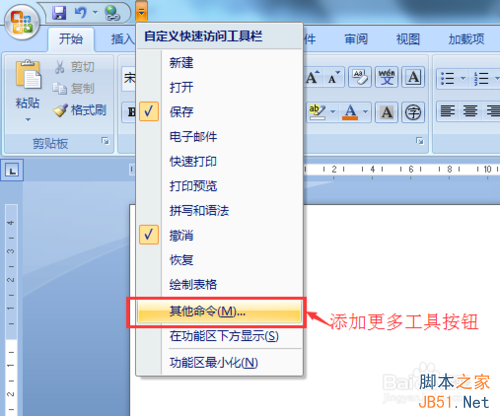 3、如果这些都不是您需要的,你可以点击“更多命令”添加需要的功能按钮