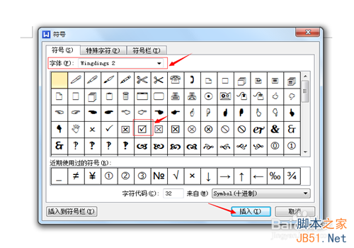在符号对话框当中,选择字体”windings 2".然后直接选择打钩的小方块,点击插入,然后关闭即可。