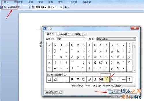 然后点“插入”--选择“符号”。在弹出的对话框当中,选择打钩符号,点击插入。