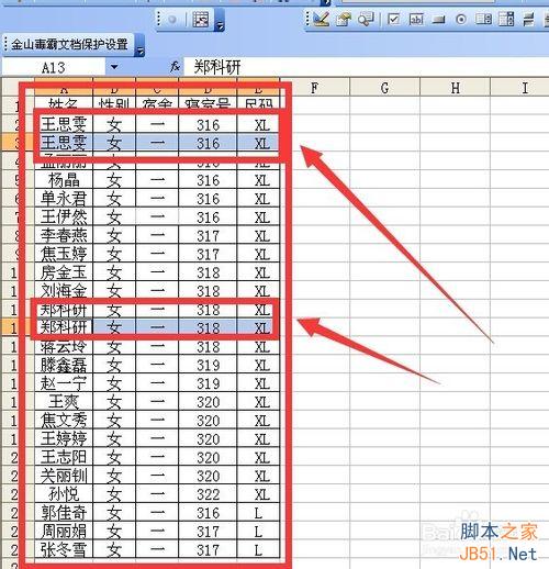 选中数据区域 观察这个数据区域中有两个行是有重复的 并且分别出现过两次 而且是挨着的