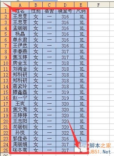 鼠标点按a1单元格 拖动鼠标到e25单元格 松开鼠标