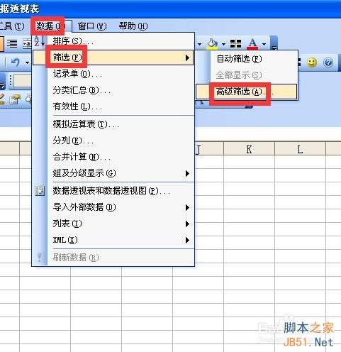 点击菜单栏 数据 筛选 高级筛选命令