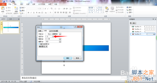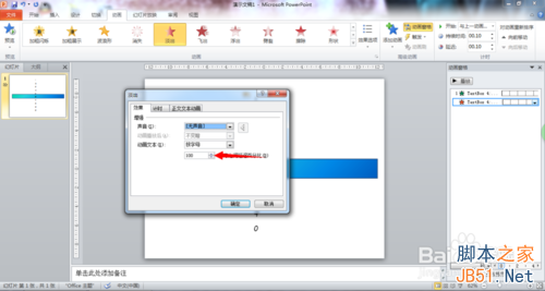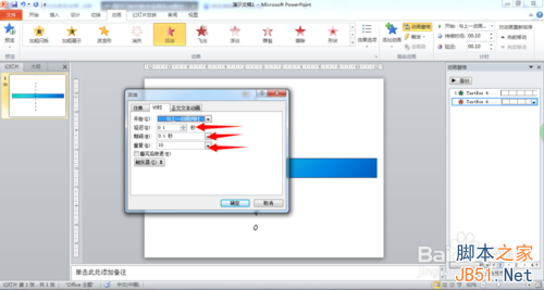 最后添加一个“100%”文本框,只设置进入“淡入”动画并且将延迟改为“10秒”。