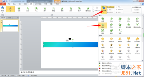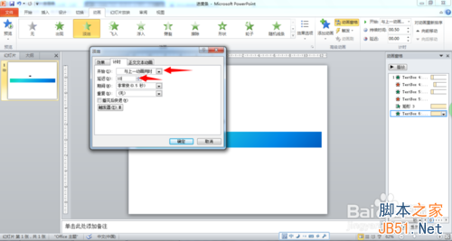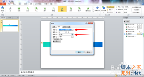 选中矩形进度条,添加进入“擦除”动画,在“效果选项”里更改为“自左侧”。在计时中将其改为“与上一动画同时”,期间改为“10秒”。