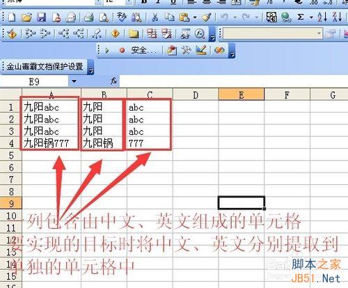 要实现的目标是将中文、英文分别提取到单独的单元格中