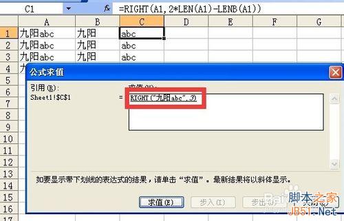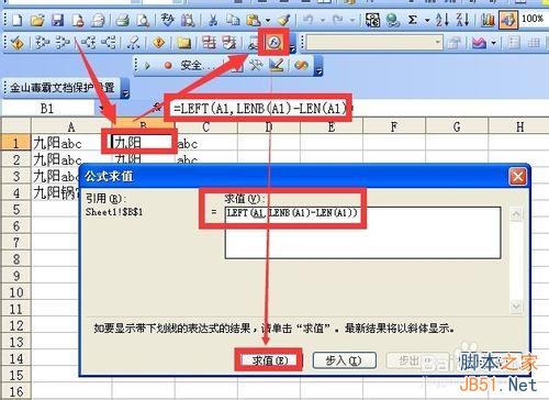这一步的结果是2 从字符串左侧提取两个字符 返回值就是九阳 right函数的作用是从单元格内左侧第一个字符向右侧开始算起 提取若干字符 提取数看第二个参数