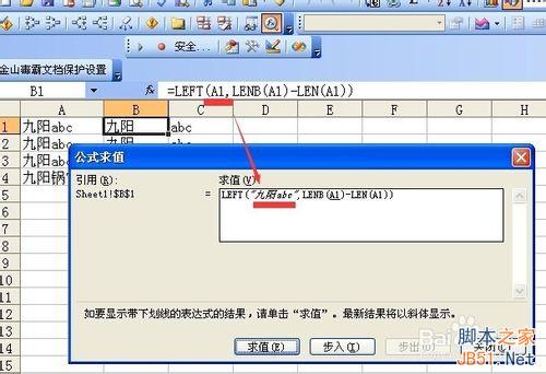 点按求值可以看到 lenb函数返回值确实是7 这一步的len函数将返回单元格内包含的字符数 它的结果应该是5 需要注意的是汉字很字母都是一个字符 但是汉字占用两个字节 字母占用一个字节