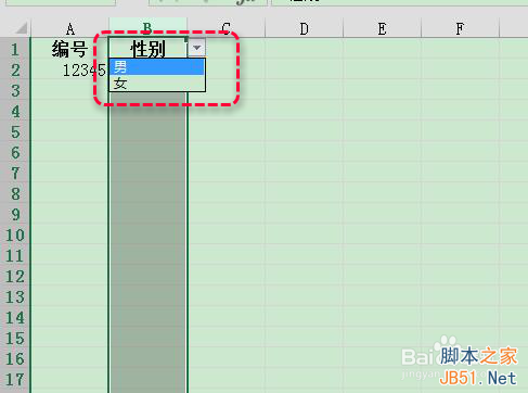 设置成功后点击B列单元格便会弹出男or女的二选一项了。