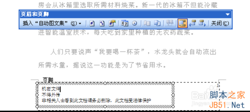 在一些word文档中,看到文档的重要说明出现在每一页,很高上大,如何实现呢。如下图所示