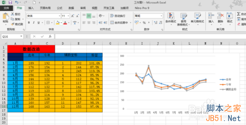 差别1:改造后的数据多了两行空白行==》为了使做出来的图表和坐标轴有间隙,也就是说调位置用的;