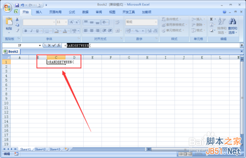 随意在电子表格单击按键盘上的输入【=】在输入【RANDBETWEEN】。