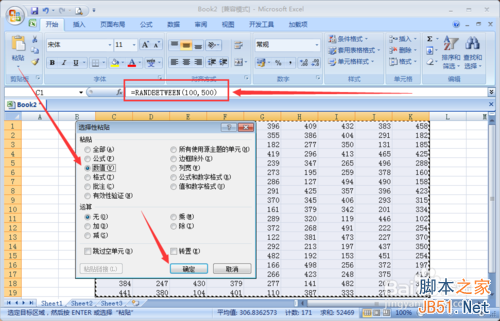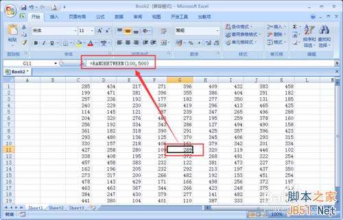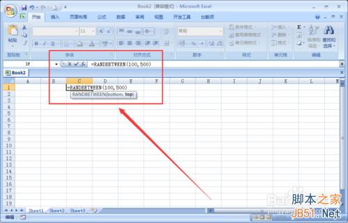 =RANDBETWEEN(bottom,top)函数的注解bottom是从数字的几开始,top是到哪个数字结束。如果想从100-500之间生产随机数的可输入=RANDBETWEEN(100,500)如图
