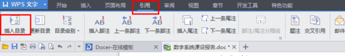 6、在所有的目录级别都设置好后,把光标点在想要生成目录的地方,接着选择最上栏的“引用”,然后点击”插入目录“。