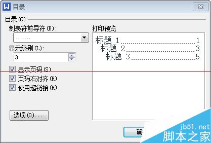 7、在弹出的”目录“对话框中选择合适的”制表符前导符“,以及一些其他选项,然后点击确定,这样一篇文档的目录便生成了。