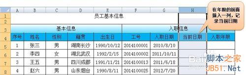 2.在记录年限的前面插入一列,作为当前日期的记录列,标题为“当前日期”也就是当天的日期;