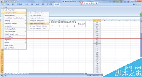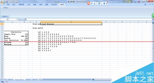 本人用的是excel2007,另外,用excel做茎叶图需要一个外挂软件PHStat2,需要的话请到百度下载哦。