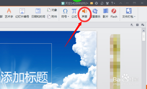 然后,可以在右边的工具栏里看到【声音】,单击声音。