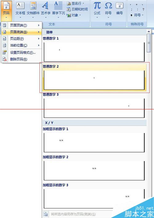 将光标定在摘要文字前,点击“插入—>页码—>页面底端(B)—>普通数字2“;