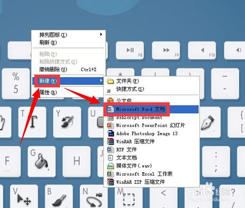 1、在桌面上点按鼠标右键 在弹出的菜单中点按 microsoft word 文档