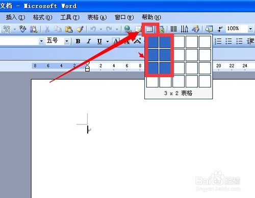 3、工具栏上点击插入表格工具 在弹出的小界面中用鼠标拖动选择单元格的个数 也就是高度和宽度