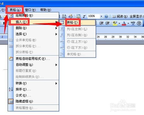 4、如果需要插入的表格比较多 可以点按菜单栏 表格 插入表格