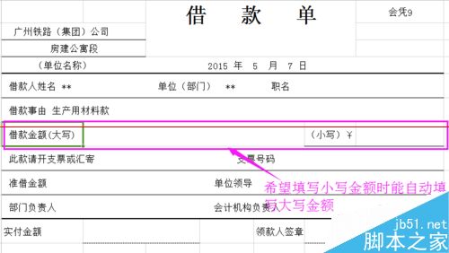 2、在填写小写数字时,希望能够自动填写大写数字金额,如下图所示: